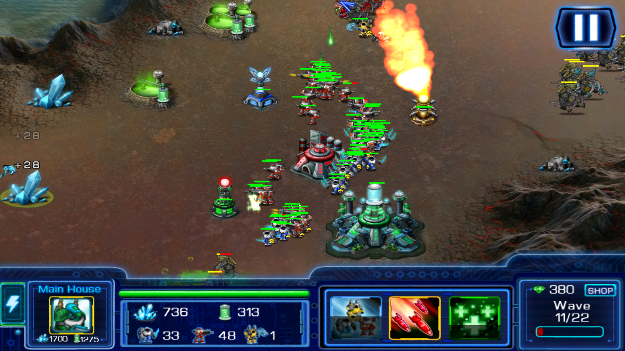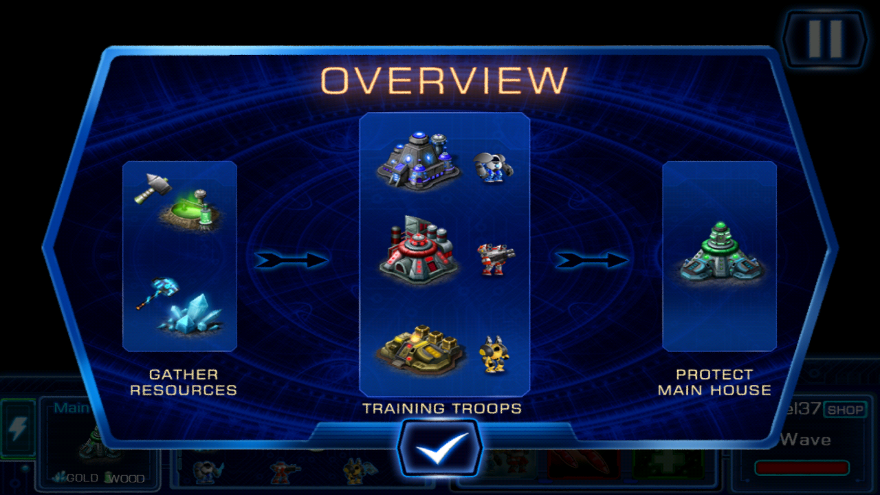 The Main House is the most important buildings in the game. Player have to protect from enemies attack and here advancement is researched. Beside the Main House, player have to build towers, LightSaber, Marine and Robot to protect Main House.